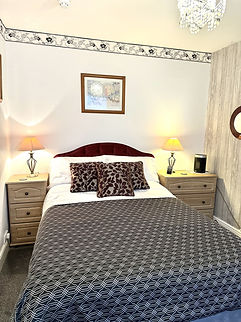 An en-suite twin bedded room on the second floor with 2 single beds, being at the front of the house overlooking the street, it has views of the mountain tops. There's ample wardrobe and drawer storage. The room has central heating, TV, kettle & hospitality tray, (re-filled daily) hair dryer & radio alarm clock. Towels are provided. The en-suite has a wash basin, WC & step in electric shower. This room has a single occupancy discount.